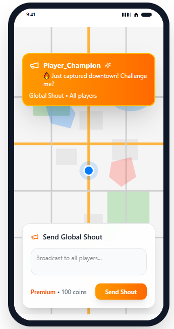 Paid feature to broadcast messages to all active players. Messages appear as overlays on the map. Assert territorial dominance and intimidate competitors.